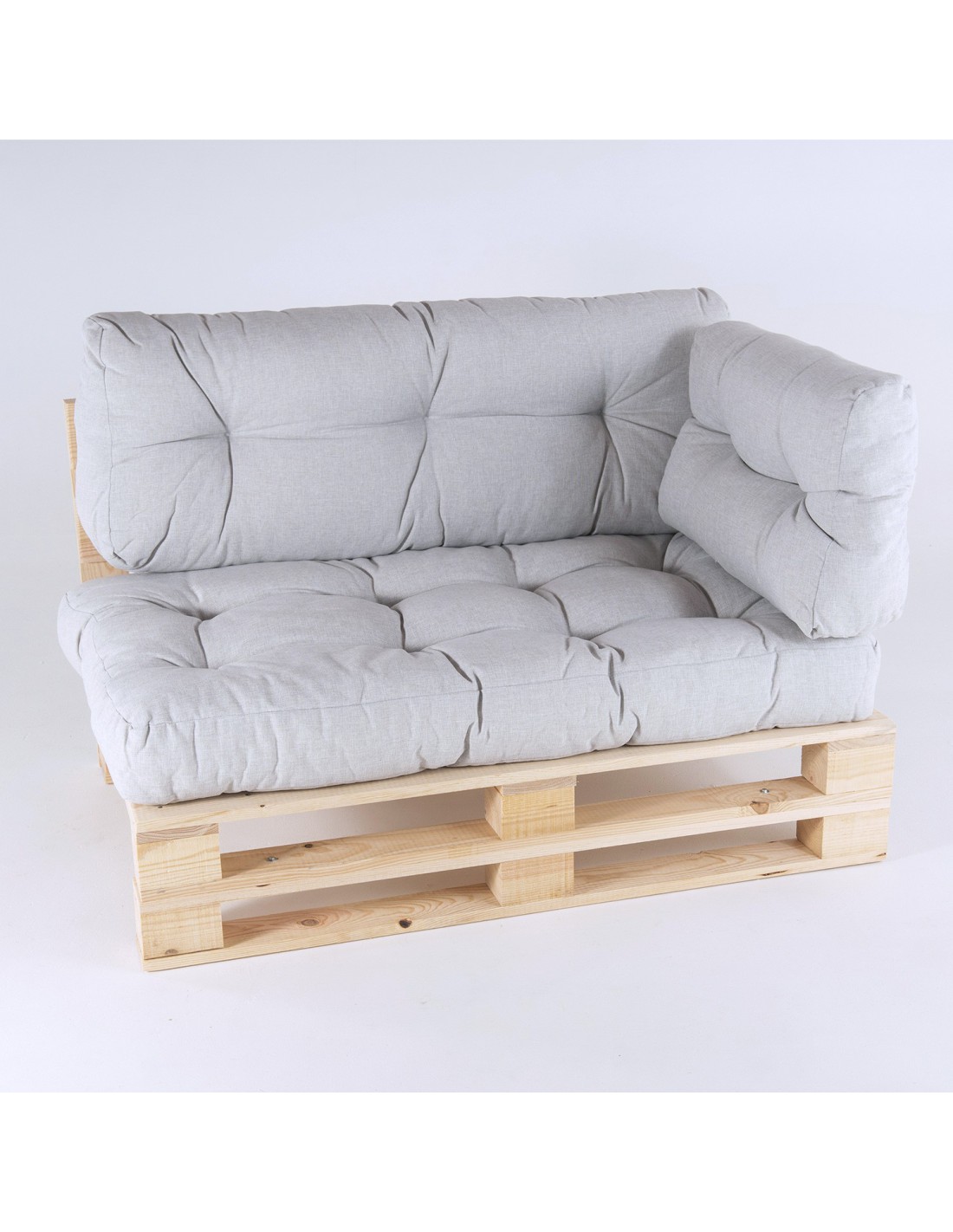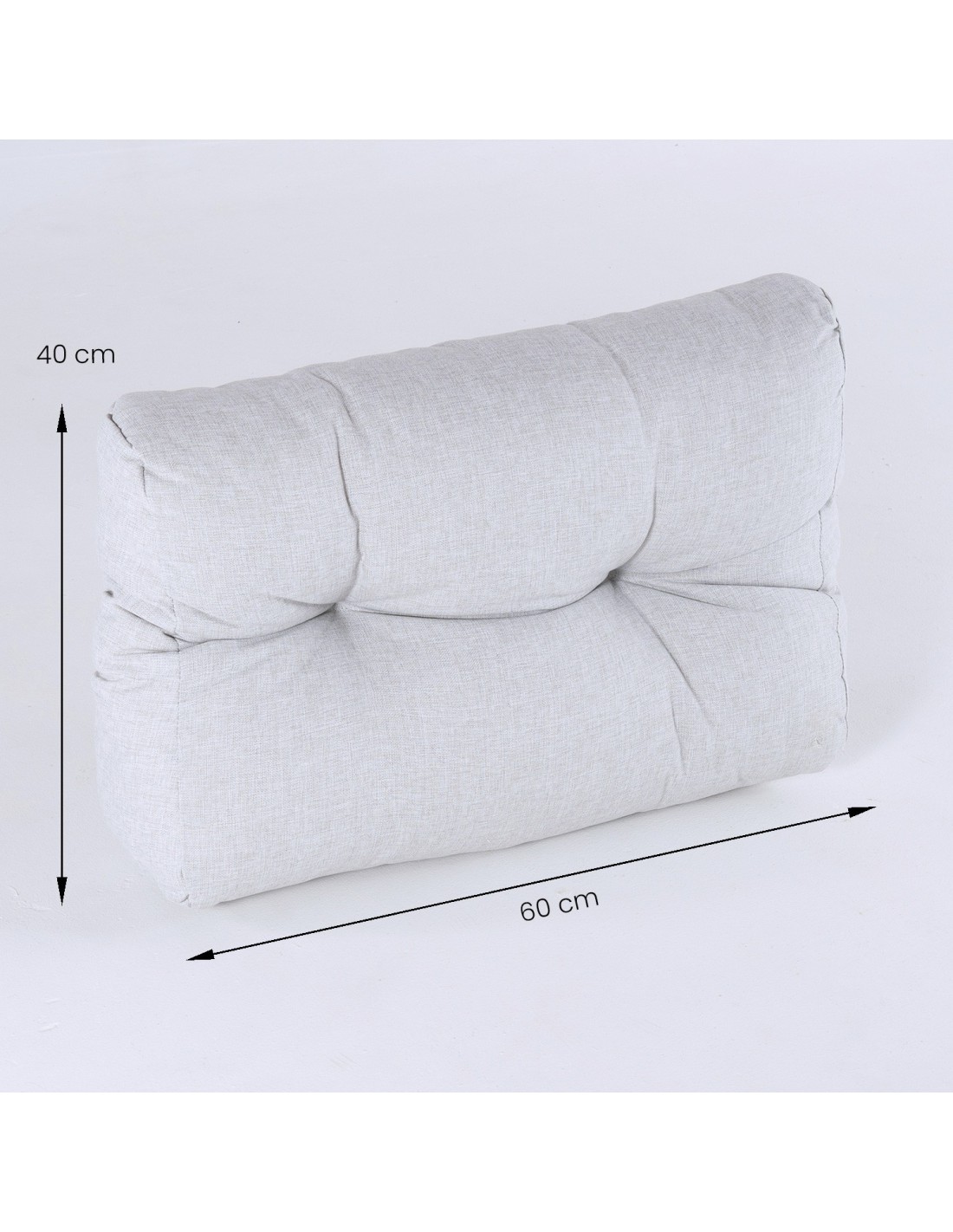 Cojín medio respaldo para sofá de palet tipo europeo o también para colocar en esquina de sofás chaiselong hecho con palets en color gris claro, apto para interior y exterior.