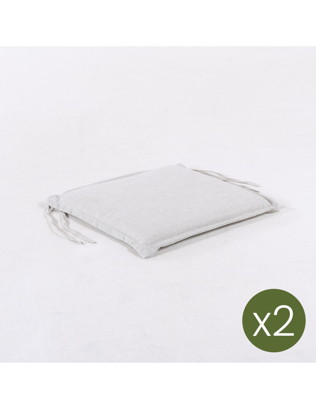 Cojín para exterior apto para sillas de teca plegables fabricado en Tejido exterior con tratamiento Olefin de gran calidad, sus ventajas son alta resistencia, persistencia del color gris claro y un tacto muy agradable. Tejido exterior usado para mobiliario de barcos y/o yates, por su resistencia a la exposición solar, agentes abrasivos y resistente al moho. Tela con tratamiento que la hace repelente al agua para que resbale y no se empape el cojín.