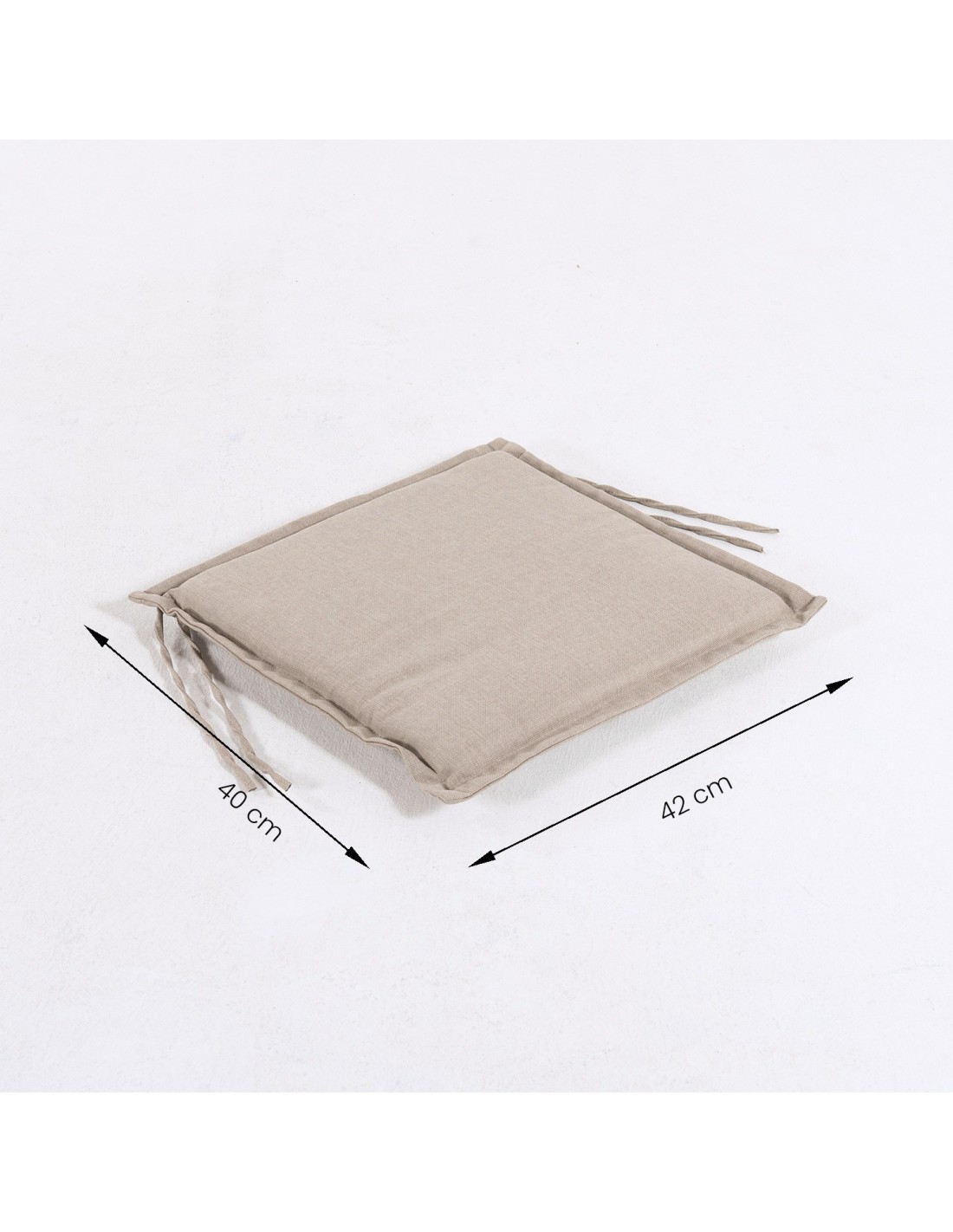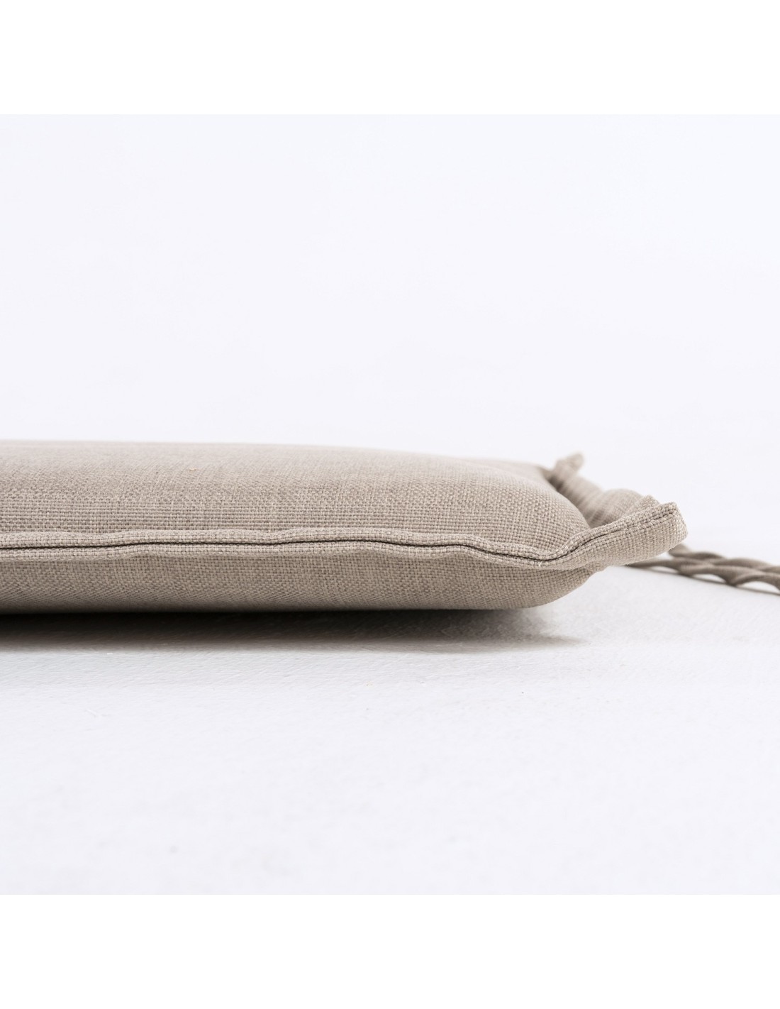 Cojín de exterior fabricado en Tejido exterior con tratamiento Olefin de calidad extra, sus ventajas son alta resistencia, persistencia del color marrón tostado , no se decolora con el sol, y un tacto muy agradable. Tejido exterior usado para mobiliario de exterior, como barcos y/o yates, por su resistencia a los rayos UV, agentes abrasivos y resistente al moho. Tela que además incorpora tratamiento que la hace repelente al agua para que los líquidos resbalen y no se moje el cojín.