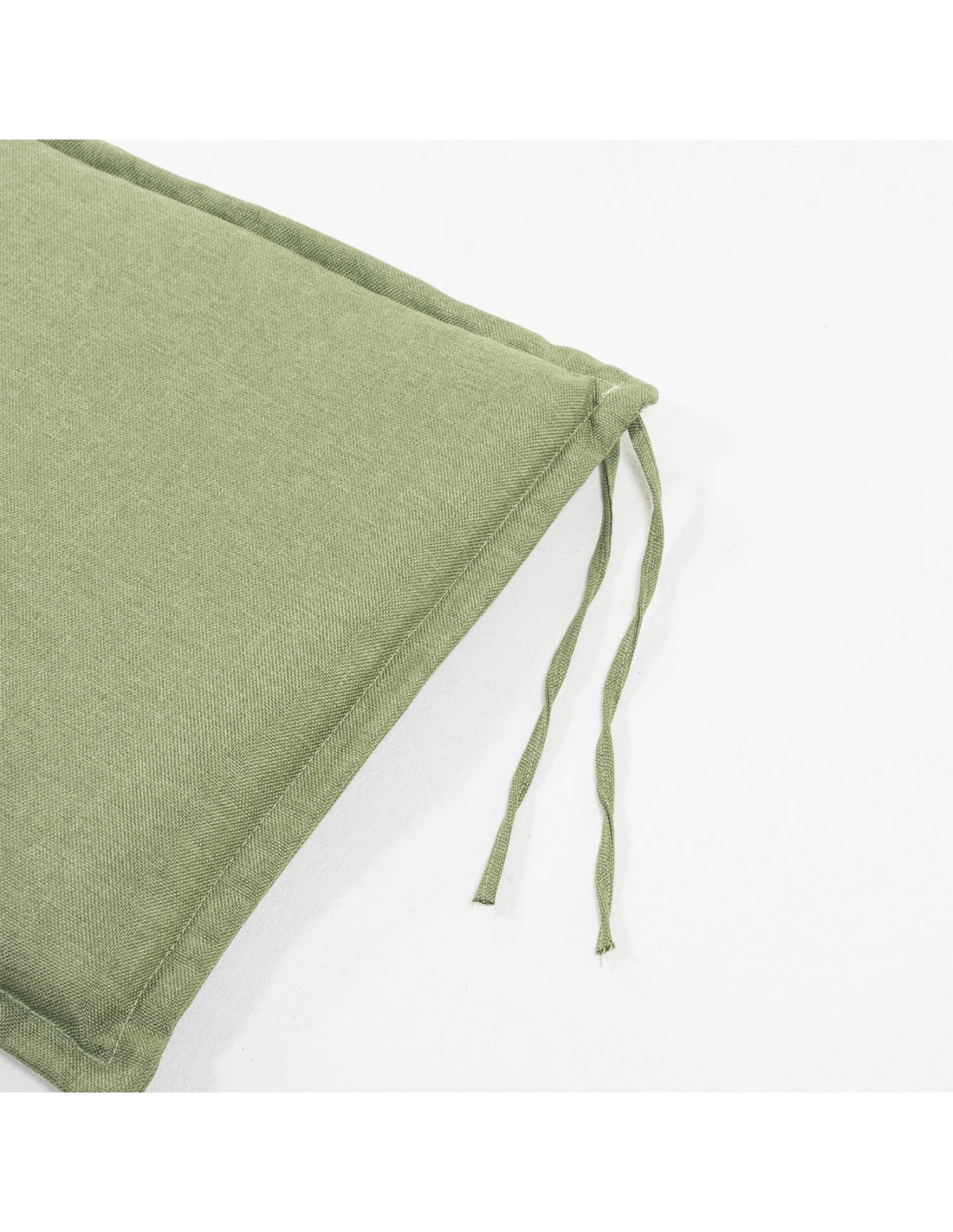 Cojín de jardín apto para sillas plegables de teca fabricado en Tejido exterior con tratamiento Olefin de gran calidad, con ventajas como resistencia, persistencia del color verde y un tacto muy agradable. Tejido exterior usado para mobiliario de barcos y/o yates, por su resistencia a la exposición solar y agentes atmosféricos extremos. Tela con tratamiento que la hace repelente al agua para que resbale y no se moje el cojín.