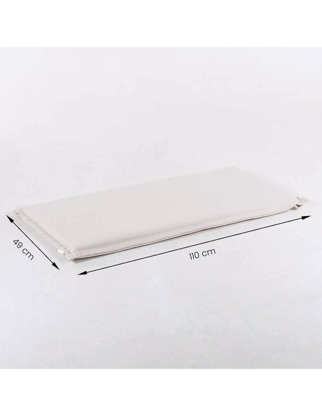 Cojín para banco de exterior fabricado en tela de alta calidad Olefin color crudo con un tratamiento especial repelente del agua para que resbale y no moje por dentro el cojín.