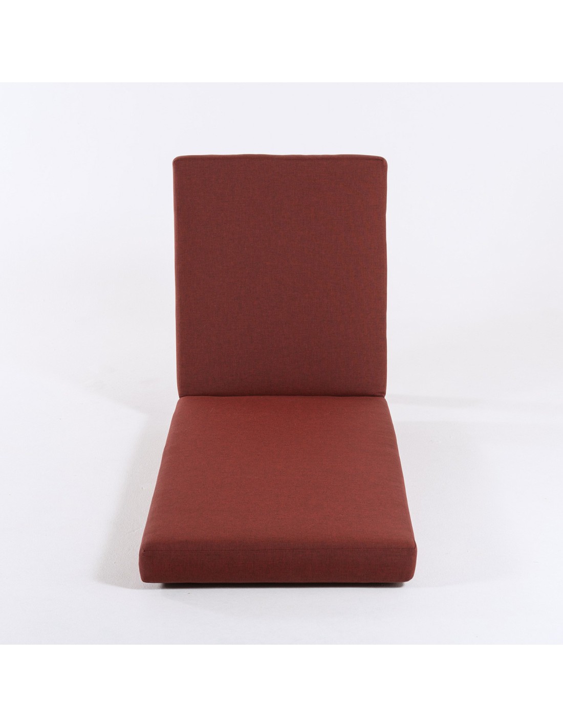 Cojín para tumbona de jardín confeccionado en tejido con tratamiento Olefin , tejido de gran calidad, con prestaciones como resistencia, persistencia del color rojo y un tacto muy agradable. Tejido usado para mobiliario de barcos y/o yates, por su resistencia a la exposición solar y condiciones climáticas adversas.