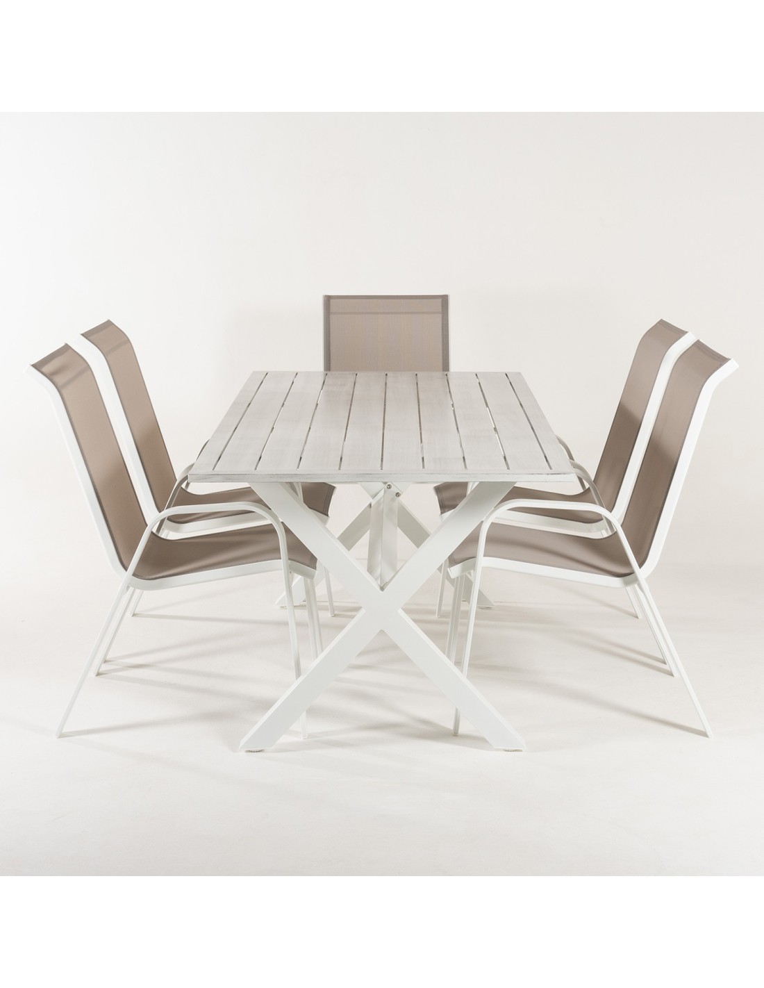 Conjunto mesa 190 cm y 6 sillones jardín apilables Laver