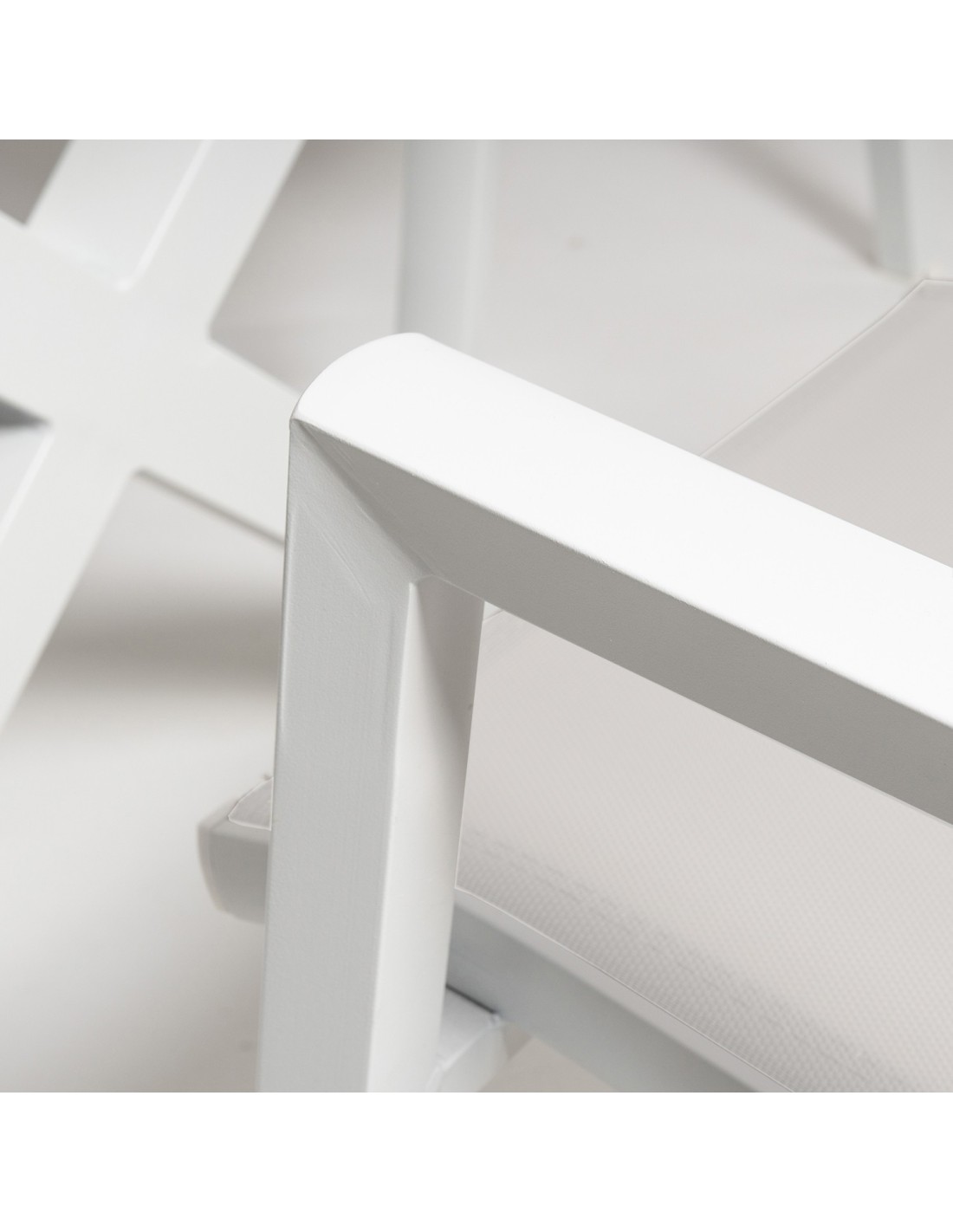 Estructura de aluminio reforzado de gran grosor, para conseguir unos muebles fuertes y duraderos. Las uniones se realizan con la misma estructura de aluminio debidamente reforzado. Además, el aluminio es un material muy ligero y con gran resistencia a la intemperie, que no es afectado nocivamente por el agua o la humedad, un material muy adecuado para estar al aire libre.