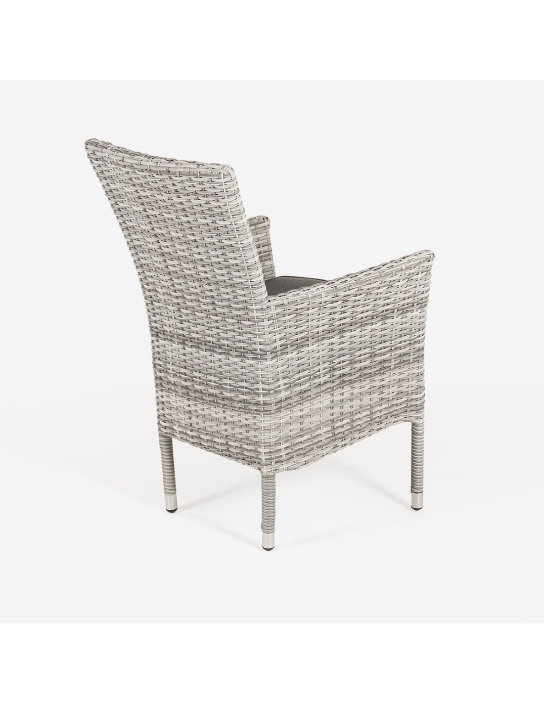 Fauteuil de jardin avec structure en aluminium et rotin synthétique plat lourd à double jonction, en gris.