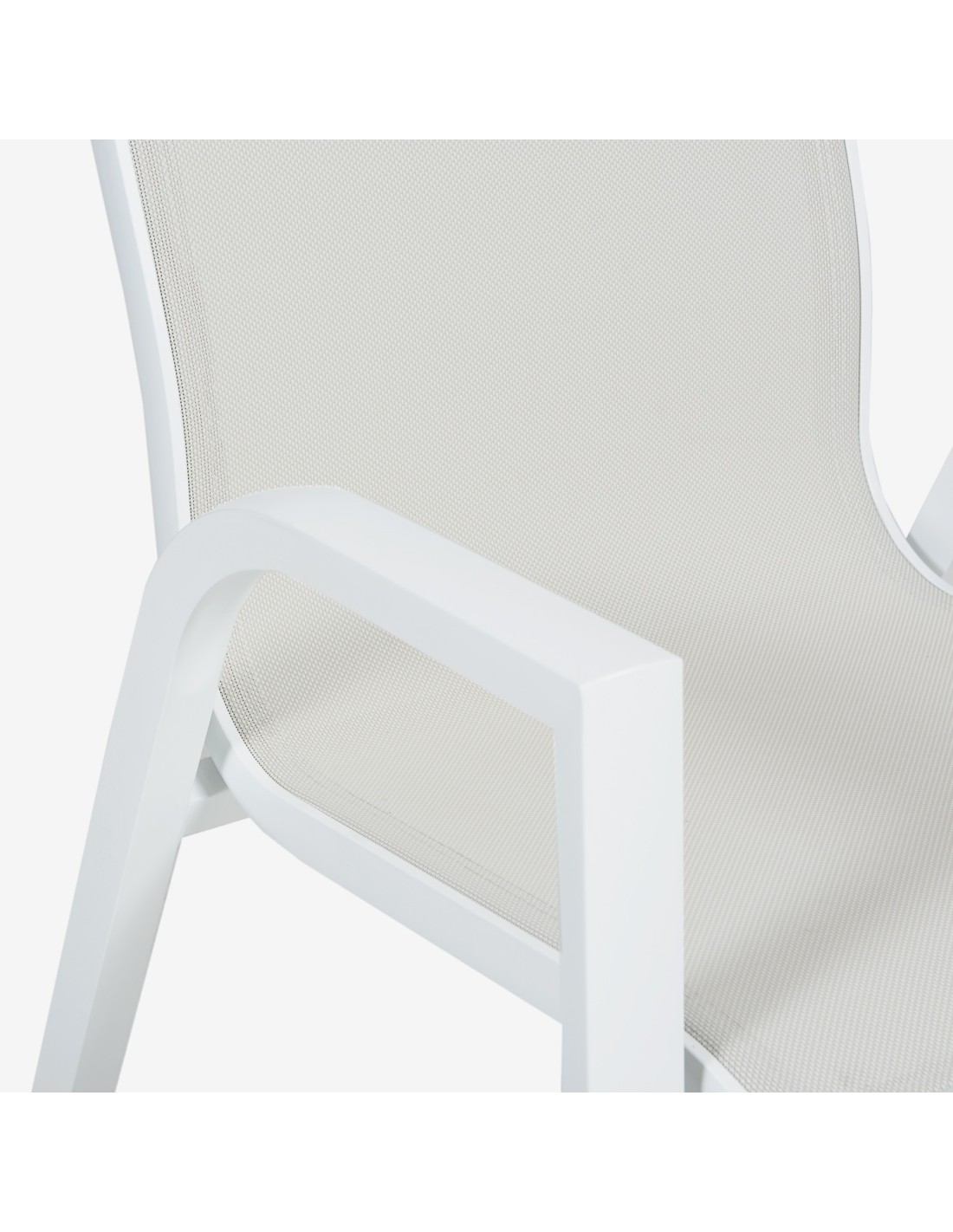 Avec un tissu textilène de couleur Beige, cette chaise ajoute une touche élégante à votre espace extérieur. La capacité empilable facilite le rangement et l'organisation, optimisant ainsi votre espace extérieur.