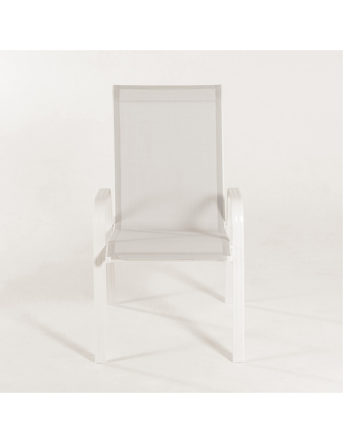 Son design sophistiqué fait que la finition blanc cassé donne à votre espace un air moderne et frais, se combinant avec une grande variété de styles décoratifs. De plus, le textilène qui recouvre l'assise et le dossier offre un confort inégalé, s'adaptant parfaitement à votre corps et vous permettant de profiter de longues heures à l'extérieur. Il est également facile à nettoyer et résistant au soleil et à la pluie.