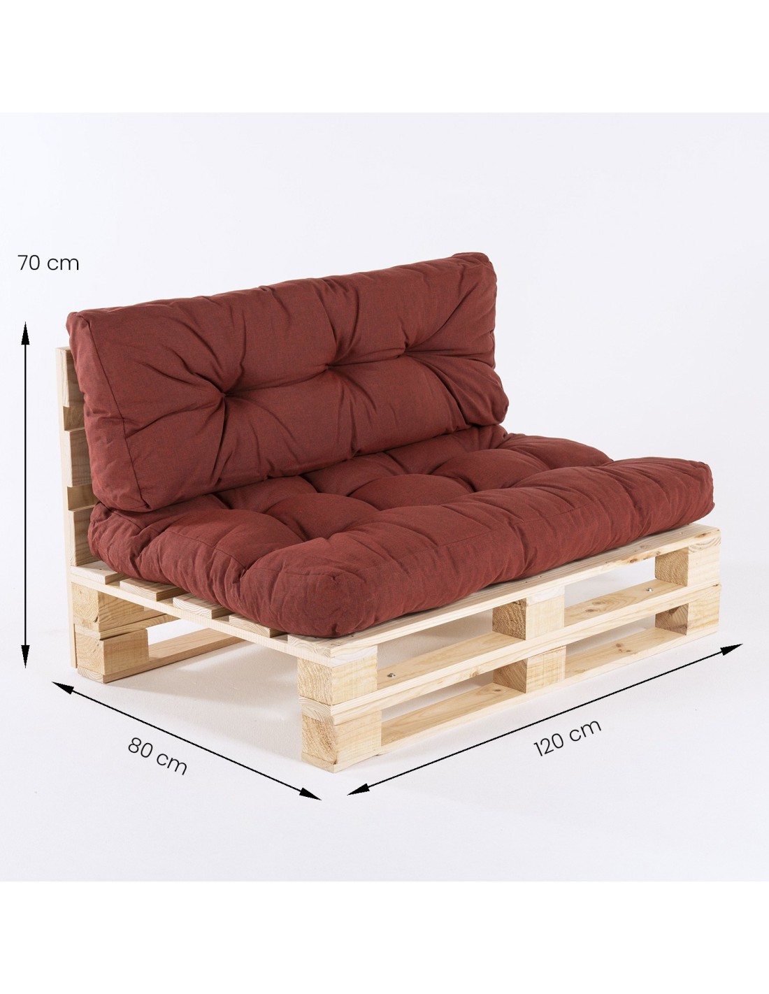 L'oléfine est un tissu de haute qualité qui ne se décolore pas au soleil et est également hydrofuge. Coussins pour palettes européennes de couleur rouge.