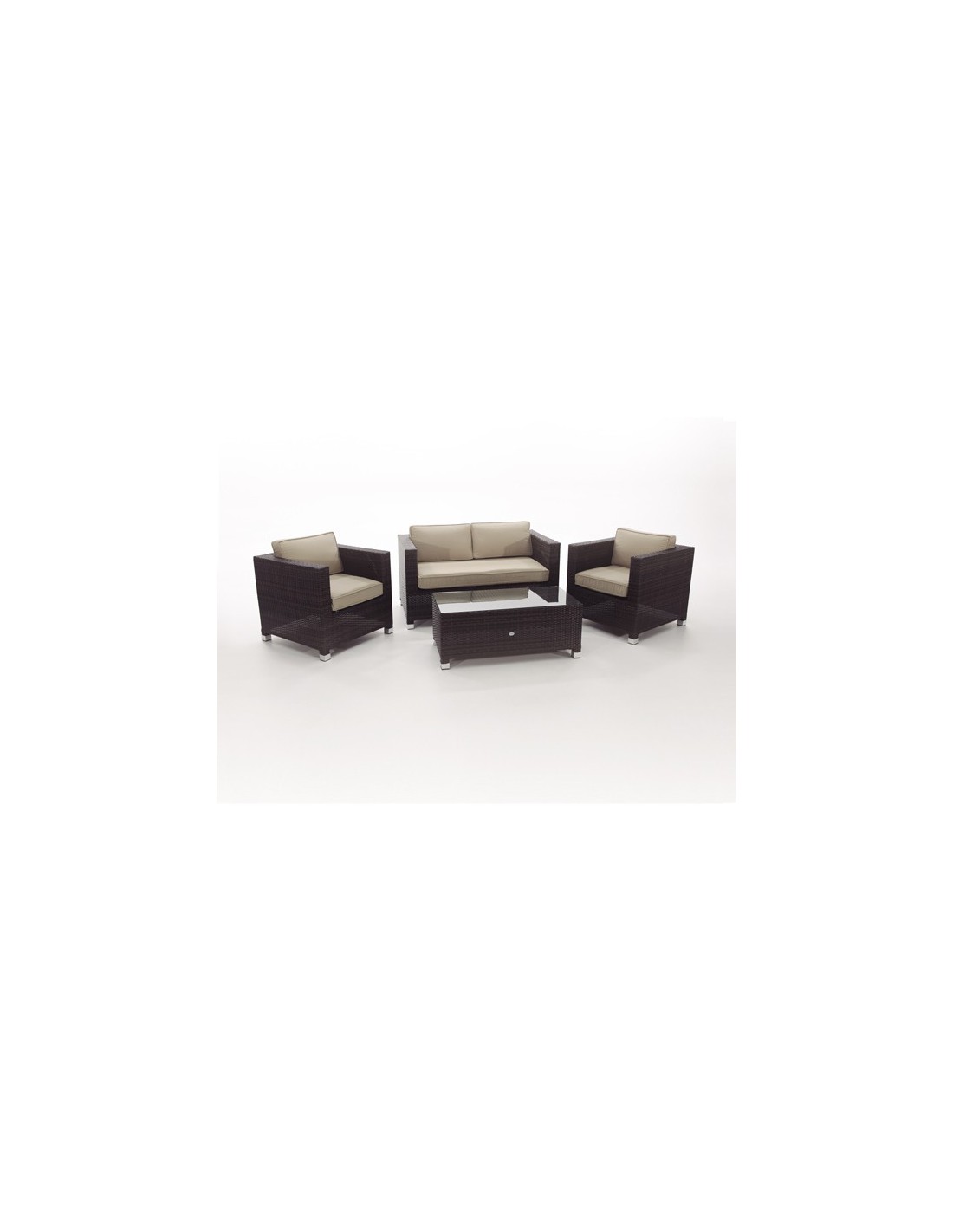 Caractéristiques principales : Ensemble : 1 canapé, 2 fauteuils et table basse en fibre et en métal.