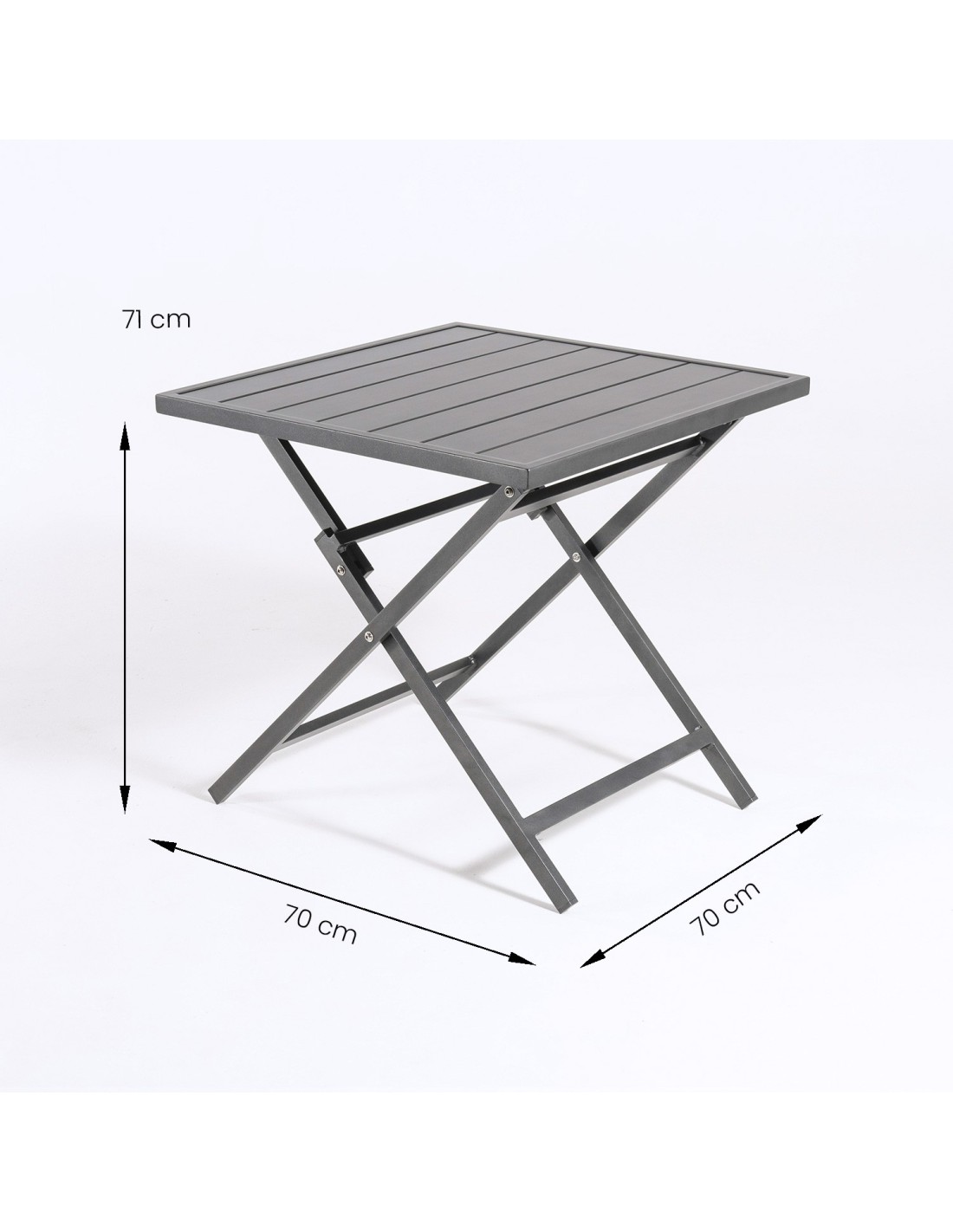Table idéale pour 2 personnes mesurant 70 x 70 x 71 cm confortable et pliable.