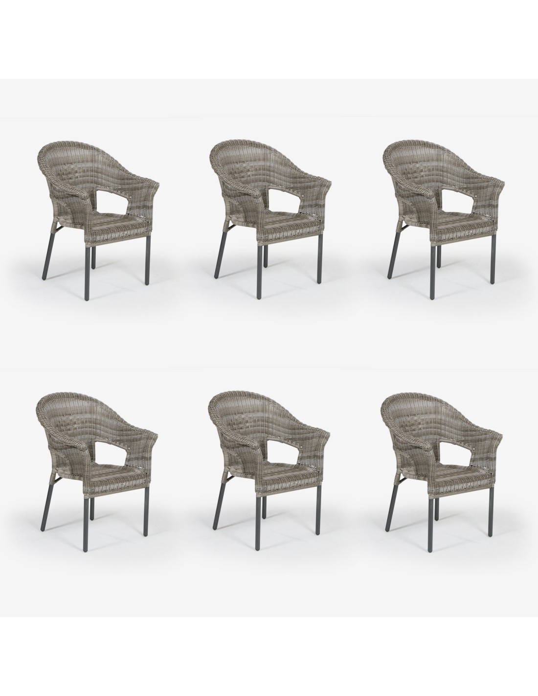 Sillón para exterior con estructura de aluminio en color negro y trenzado con ratán sintético para exterior, redondo y en color natural, muy parecido al mimbre. Sillón para jardín con diseño rústico, realizado con material con protección de rayos UV, perfecto para exterior incluso con inclemencias climáticas como nevadas o elevadas temperaturas debido al sol.