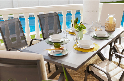 Conjunto de mesa redonda de alumínio para varanda e 2 poltronas boden
