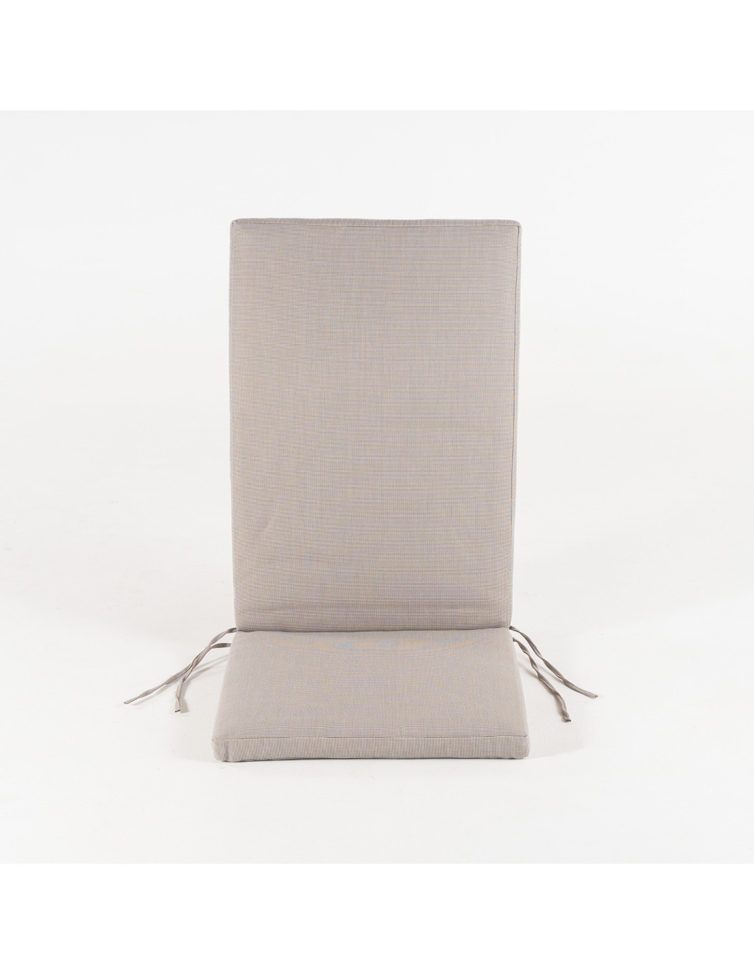 Almofada exterior para espreguiçadeiras de jardim na cor cappuccino. Almofada de poliéster 250 gramas com tratamento hidrorrepelente, para que deslize e não molhe. Almofada exterior com capuz, recomendamos a lavagem à mão ou na máquina de lavar com programa para peças delicadas. Recomendamos guardar dentro de casa em caso de chuva constante ou tempestades de verão.