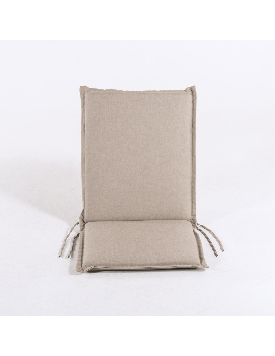 Almofada de assento e encosto, adequada para cadeiras dobráveis de teca para exteriores em poliéster 250 gramas com um tratamento de olefina que evita o descolora mento quando exposto ao sol. na cor marrom tostado.