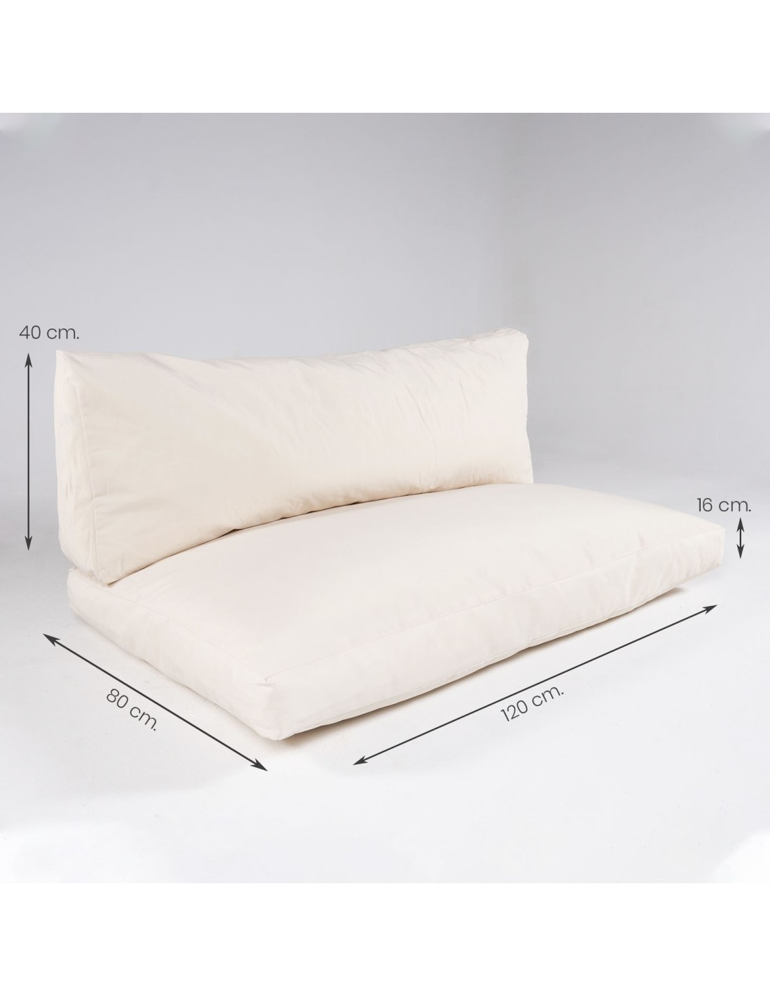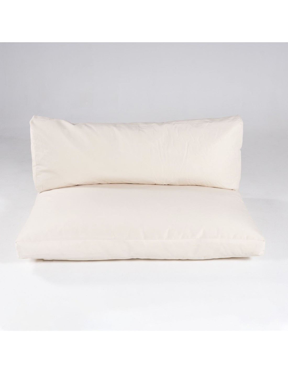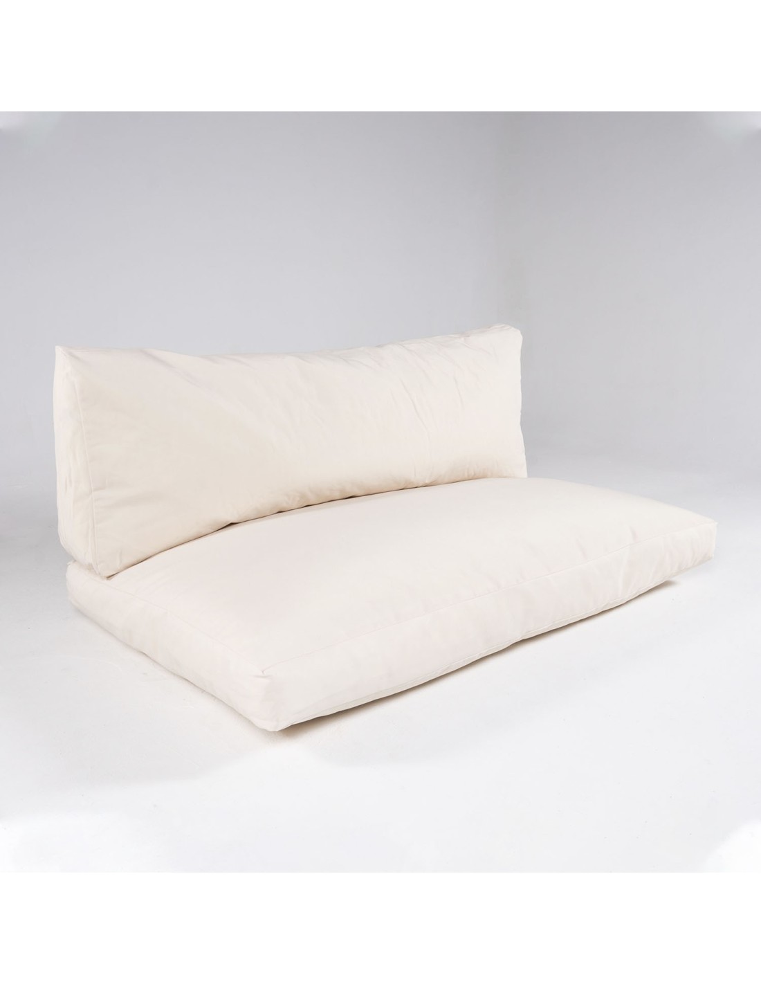 Almofadas para paletes europeias em cor creme adequadas para interiores e exteriores.