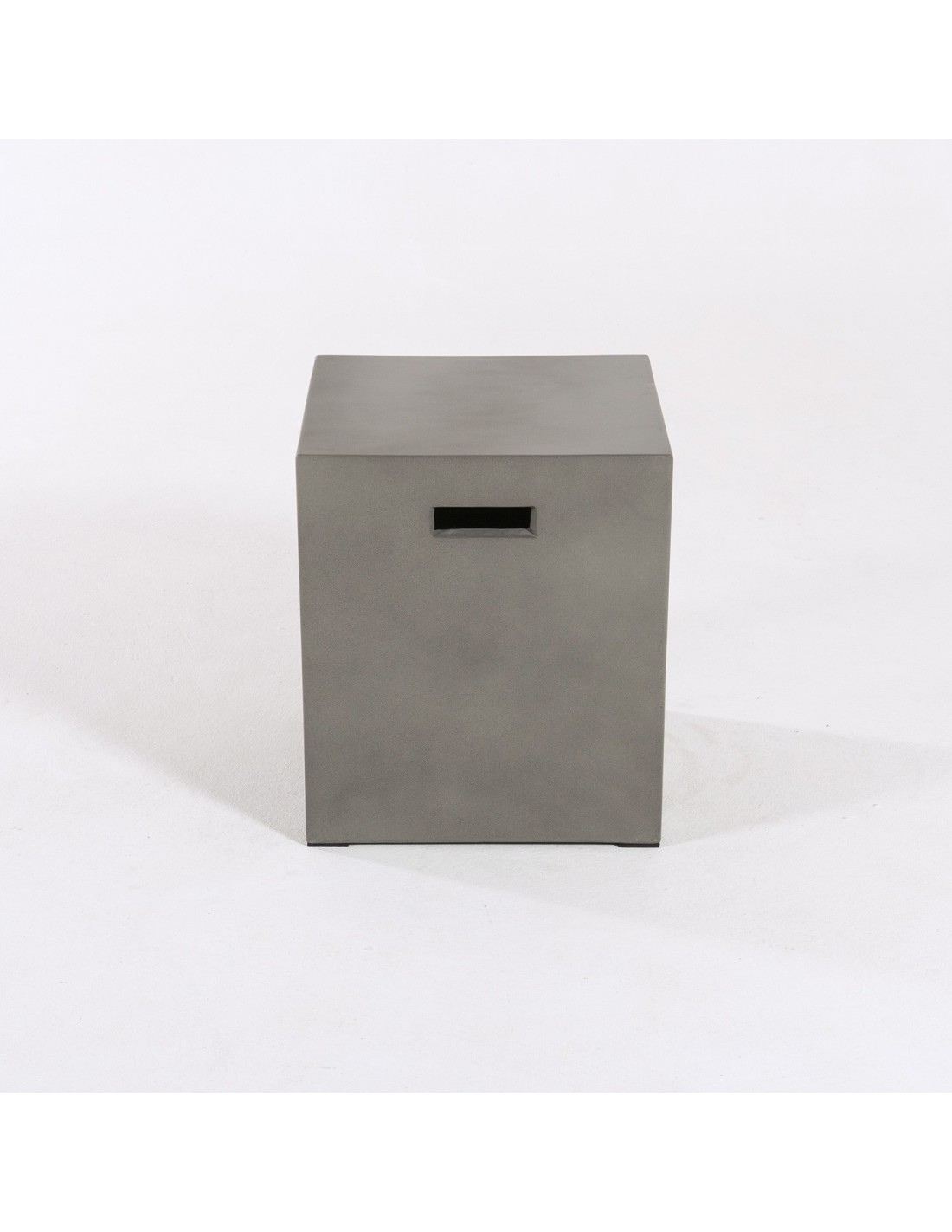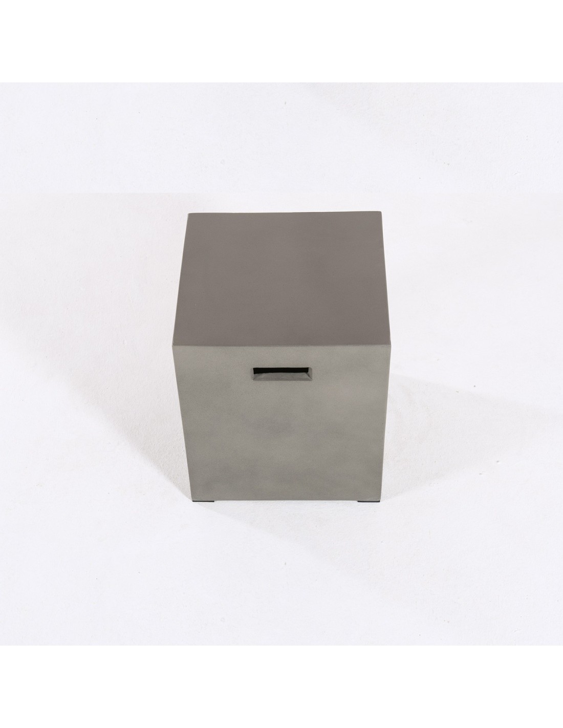 Diseño único y durabilidad con este taburete con base cuadrada de cemento para exterior.