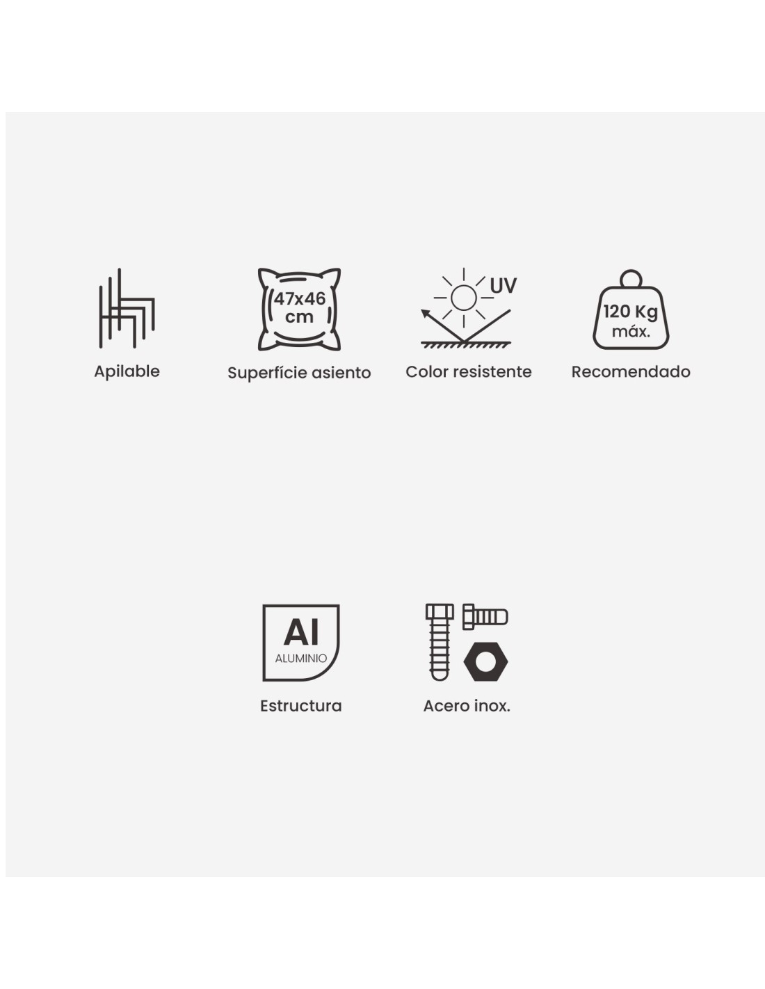 Almofada curva para cadeiras de jardim Olefina, cor cinza claro, Não perde a cor,...