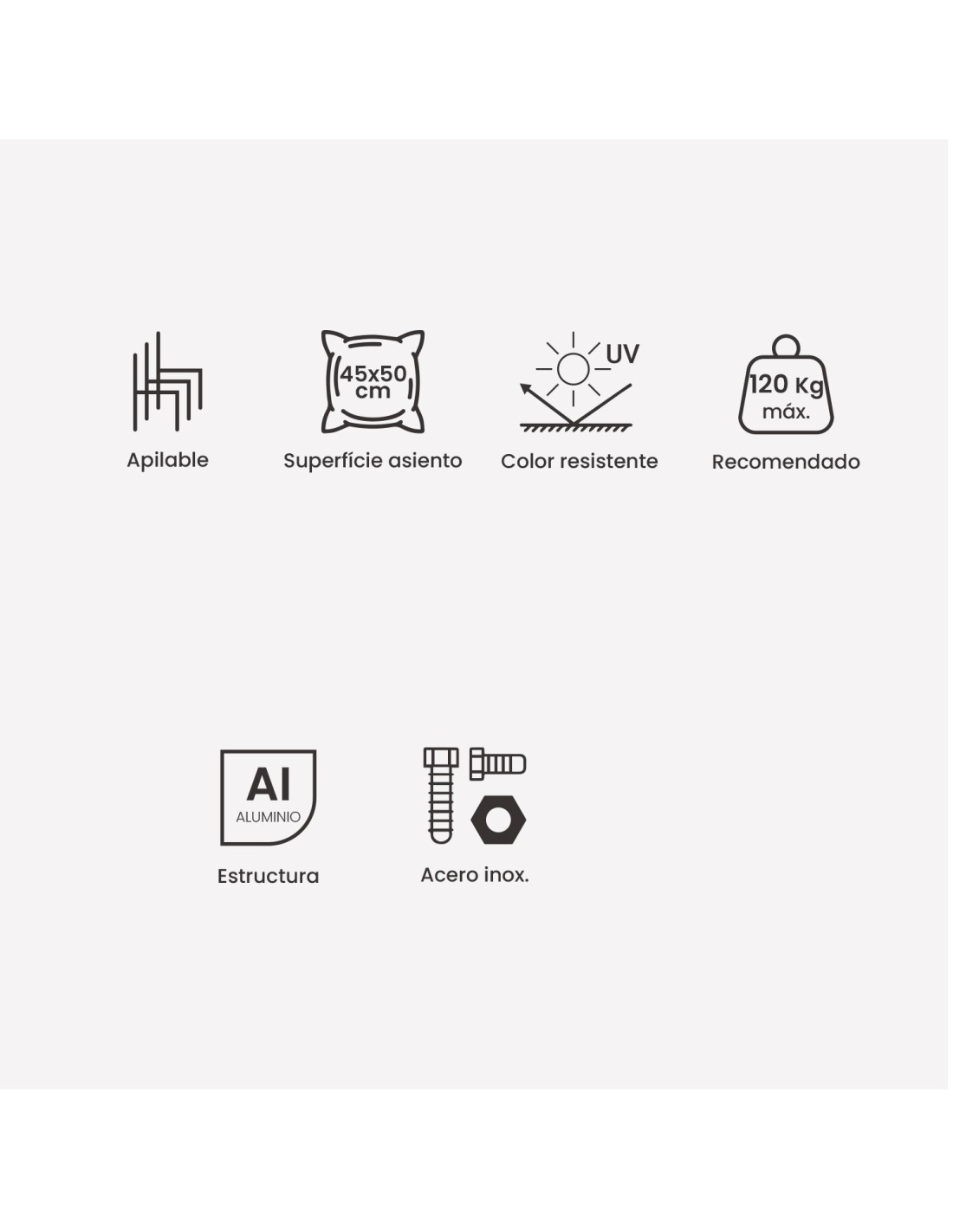 Sua estrutura em alumínio reforçado não só garante durabilidade, como também é incrivelmente leve e fácil de movimentar quando você deseja empilhá-la, tornando-a perfeita para qualquer espaço externo.
