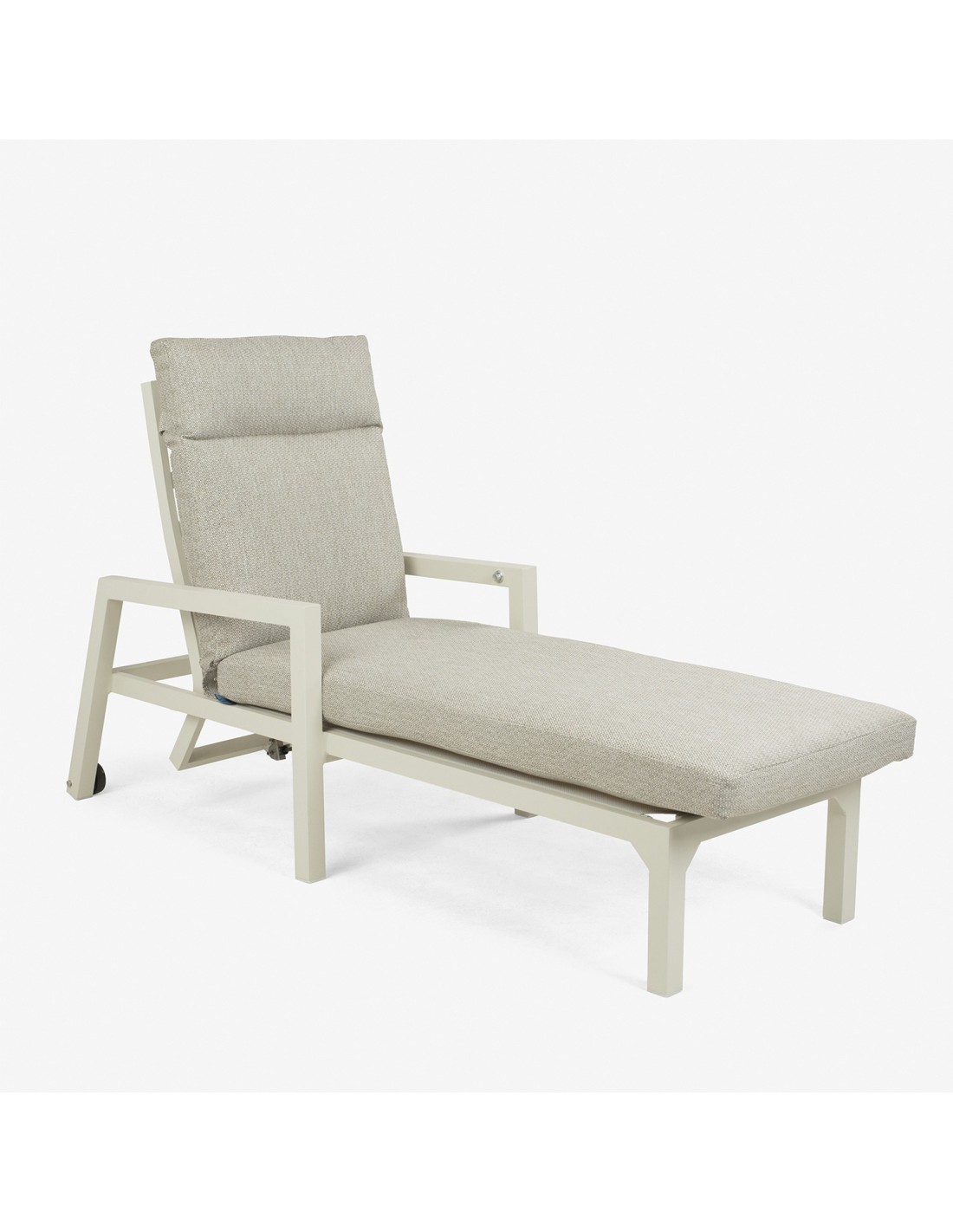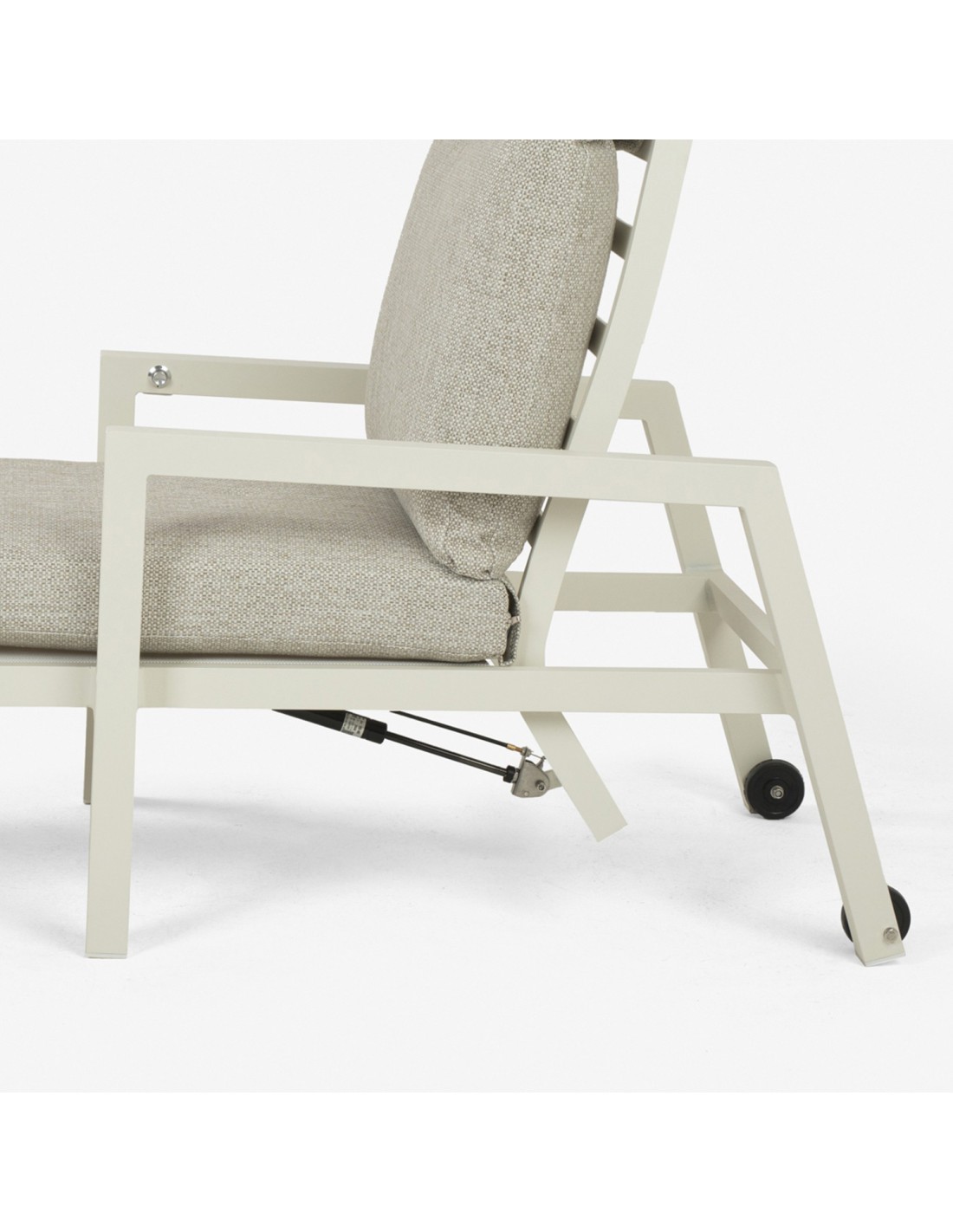 Faça uma pausa com esta espreguiçadeira de jardim reclinável com encosto hidráulico, feita de alumínio branco sujo, resistente e leve.