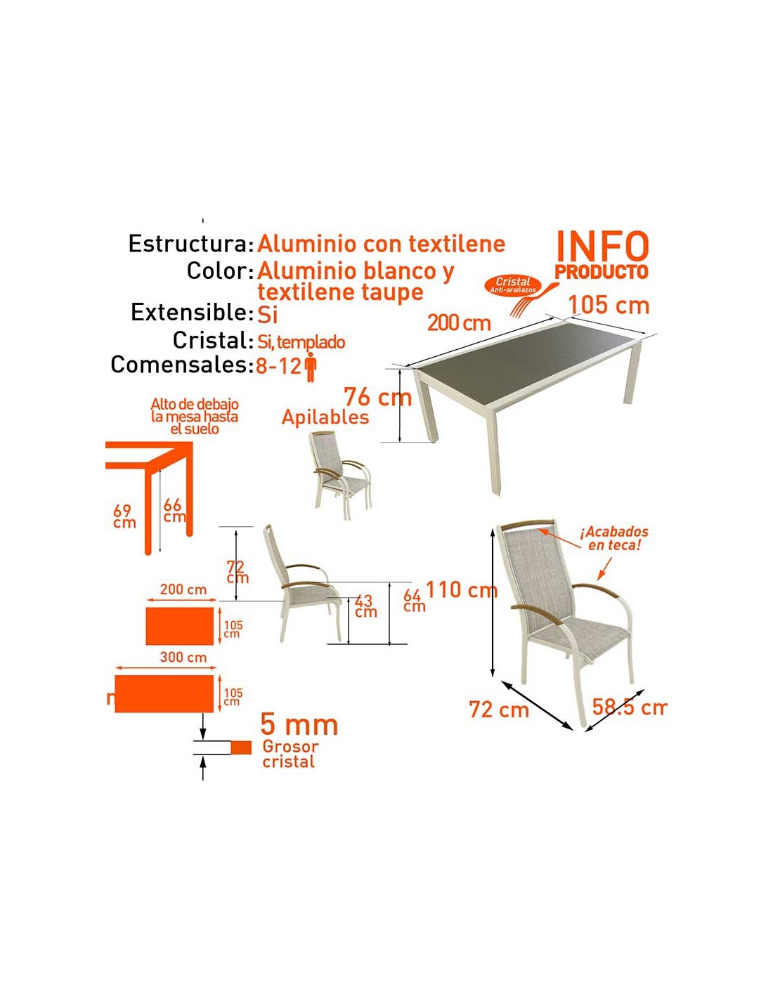 Pack de 6 almofadas para cadeiras de jardim com formato curvo, cor pedra, repelente de...