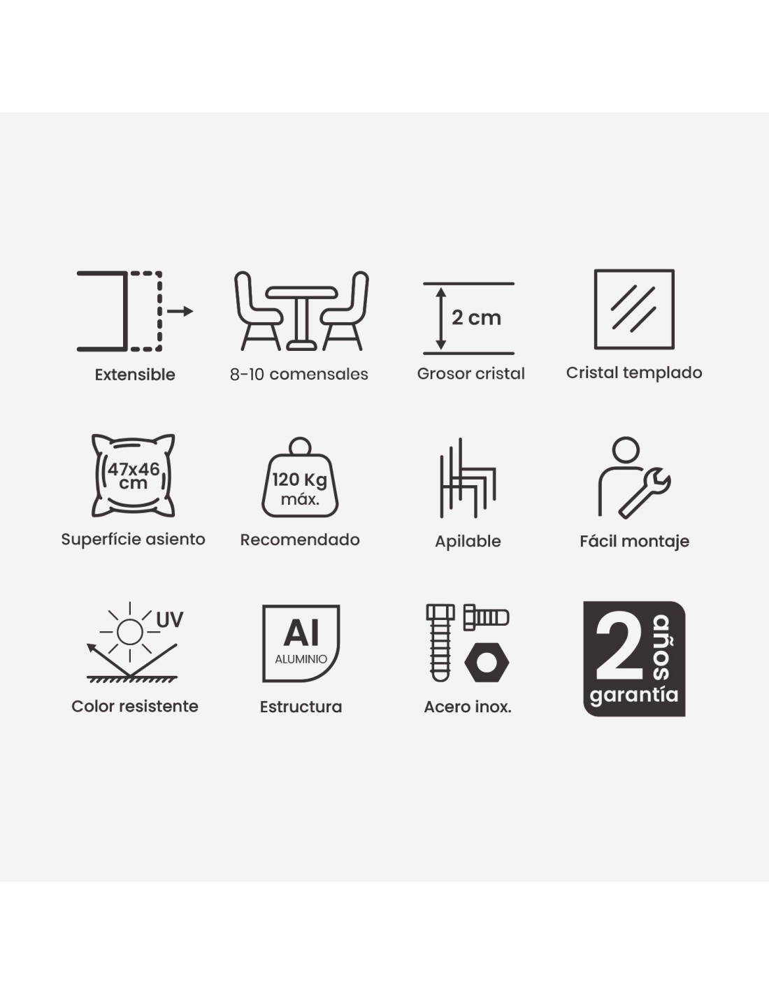 Almofada curva para cadeiras de jardim Olefina, cor cinza claro, Não perde a cor,...