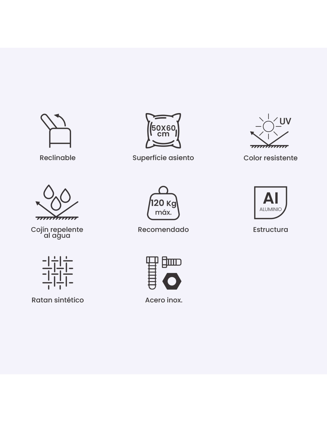 Almofada para cadeiras de jardim reclináveis ??cor pedra, repelente de água e...