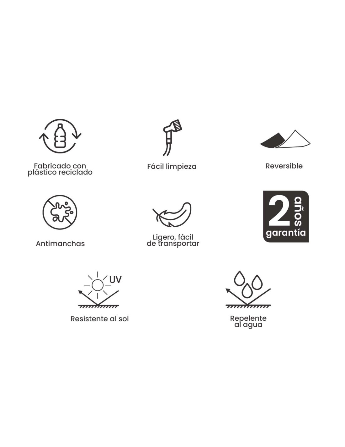 A sua resistência ao sol torna-o um acessório ideal para o seu terraço ou jardim. É um tapete resistente à umidade , portanto pode permanecer ao ar livre sem ser afetado pelas mudanças climáticas.
