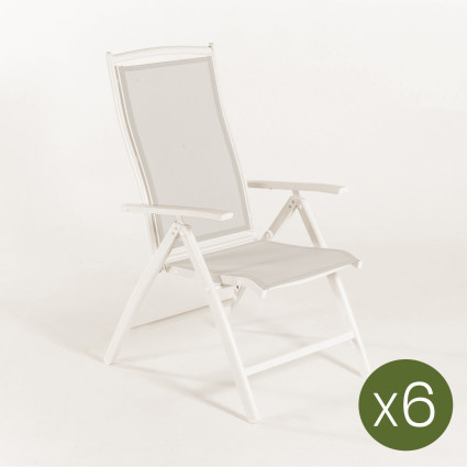 Pack de 6 Sillónes para jardín con estructura de aluminio en color blanco roto y tela textilene color blanco roto.