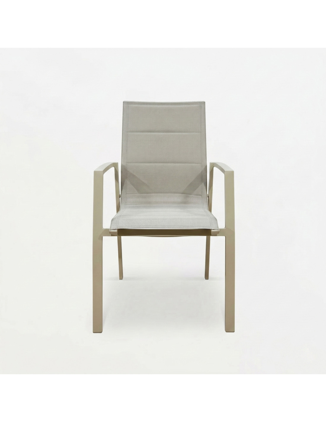 Los sillones están confeccionados en Textilene 2x2 reforzado con doble costura. Este tejido se caracteriza por ser transpirable y altamente resistente al sol, al agua y a las variaciones de temperatura, garantizando firmeza y durabilidad durante muchos años.