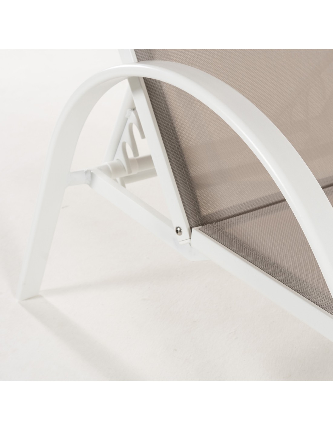 Textilene 2x2, reforzado con un doble cosido. El textilene es de un material transpirable y resistente a la exposición del sol, al agua y cambios de temperatura; que aporta robustez y durabilidad a la tumbona para que puedas disfrutarla durante muchos años.